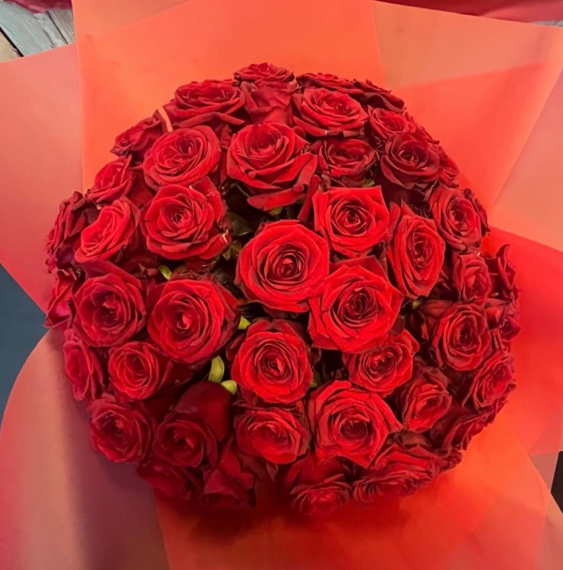 A stunning bouquet of 50 Roses, sent to your loved one in bud this Valentine's Day. These gorgeous Roses come wrapped in cellophane with a matching bow.